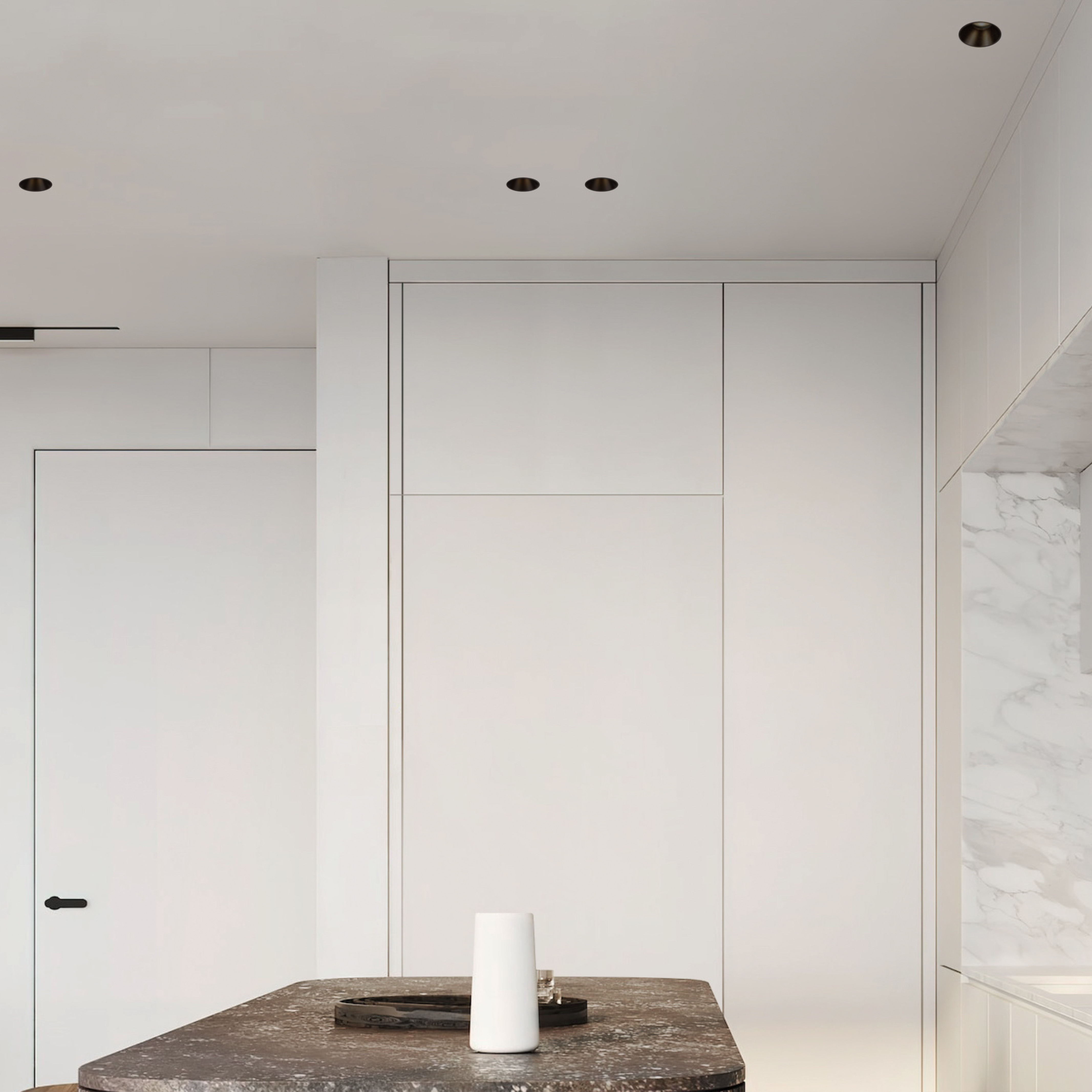 The HALO DOT frameless recessed spotlight emits a light beam, directed at a single point or at an angle of up to 30°, ideal for illuminating an object or a specific area. The LED light source is positioned deep in the spotlight body, which reduces the glare effect.