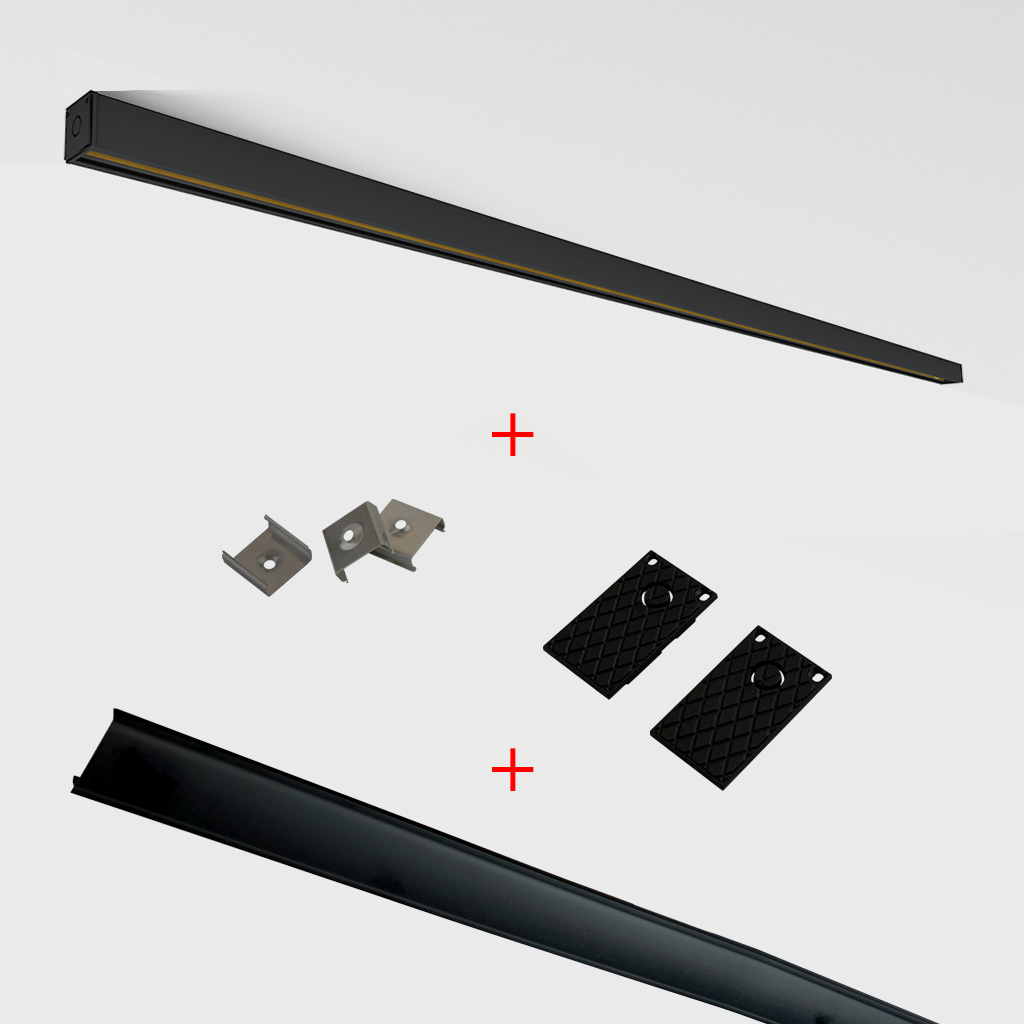 The magnetic slim track rails with VISIBLE MOUNTING are part of an LED lighting system that uses a magnetic profile and is mounted directly on the surface of the ceiling or wall. This magnetic profile allows the easy fixing and movement of the magnetic lighting fixtures thanks to the "click" type system, allowing their positioning and moving without having to turn off the energy power supply.